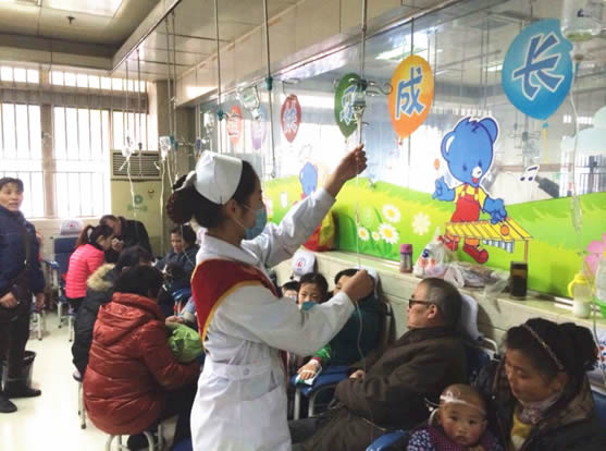 近日,天氣冷熱不定(dìng),我院急診室迎來就診高峰。一時間輸液(yè)室病患驟增,醫務人員緊張。市婦(fù)幼保健院立即組織誌願(yuàn)者到輸液室協助維持秩序,為患者提供各種貼心(xīn)幫助。