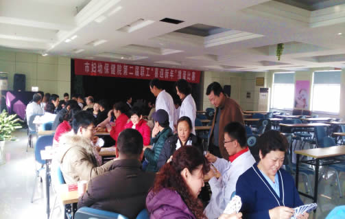 近日,我院(yuàn)開展第二屆職工“喜迎新年”摜蛋比賽,黨委書記(jì)葛丕(pī)、紀委書(shū)記馬誌娟、副院長王海艦親臨現場觀(guān)看(kàn)比賽。來自全院的100多名職工參與此次活動,共同度過一個歡樂的下午。比賽采取淘(táo)汰賽和積分製(zhì),100多名(míng)職工4人一組坐滿了賽場,經過(guò)幾輪激烈角逐(zhú),最終保衛科(kē)崔孝水、劉忠於獲得(dé)比賽第一名的好成績。