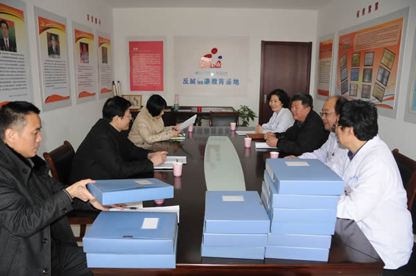 驗收組一行先後實地察看了我院廉政教育基地、廉政文化室和文(wén)化(huà)牆,查閱廉政文(wén)化檔案、台賬等資料,聽取了醫院紀委書記馬誌娟關於廉政文化建設工作的匯報(bào),對醫(yī)院創建工作給予了充分肯定。