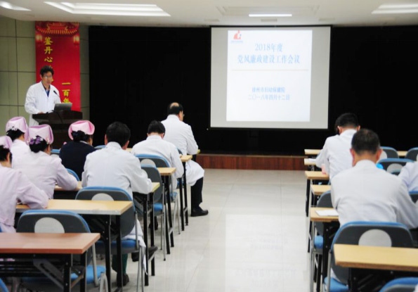 近日,我院召開黨風廉政建設工(gōng)作會議。黨委書記葛(gě)丕主(zhǔ)持(chí)會議,院領(lǐng)導班子全體成員、全院基層黨支部書記、科室負(fù)責人(rén)及護士長約100餘人參加會議。