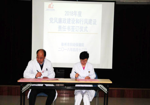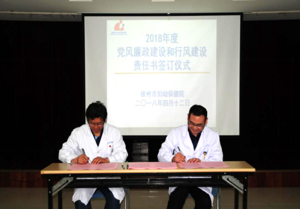 會議最後,院黨委書記葛丕、院長黃大文分別與院各基層黨支部書記(jì)、科室負責人簽訂了《徐州市婦幼保健院2018年黨風廉政建設和行風建設責任(rèn)書》。