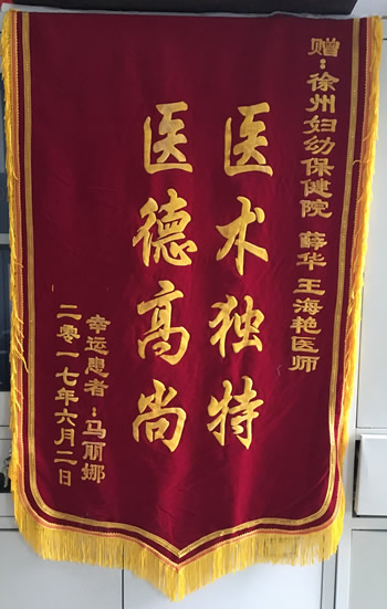 錦(jǐn)旗贈我院薛(xuē)華、王海燕醫師
