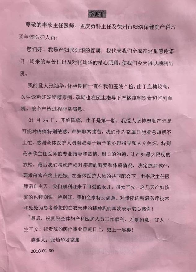 患者致信感謝李欣主任醫師、孟慶勇科主任及六病區全體醫護(hù)人員