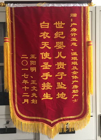 錦旗贈我院許玉忠、溫琨琨醫生及全體產房助產士