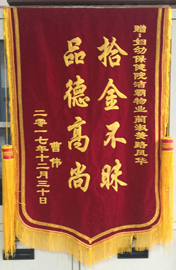 錦旗贈(zèng)我院潔霸物(wù)業公司藺淑美、路鳳華