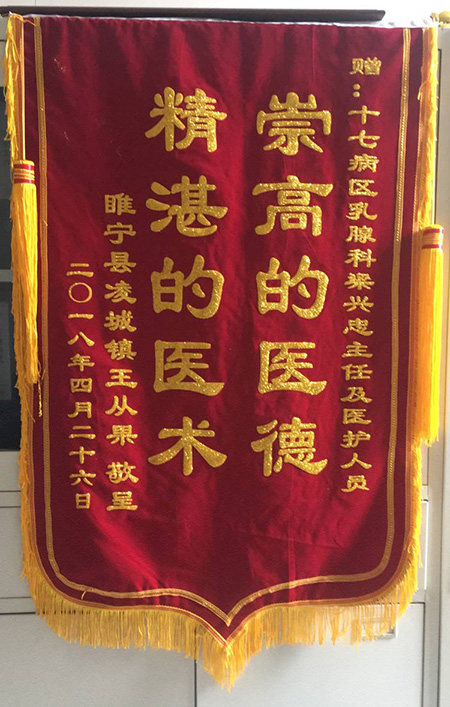錦旗贈我院十七病區乳腺科梁興忠主任及醫護人員(yuán)