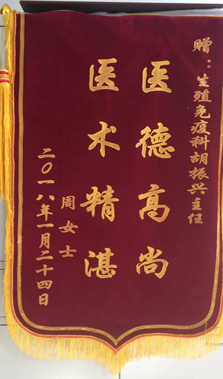 錦旗贈(zèng)我院生殖免疫科胡振興主任