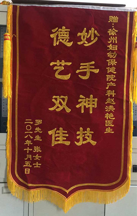 錦旗贈我院(yuàn)產科趙洪豔(yàn)醫生