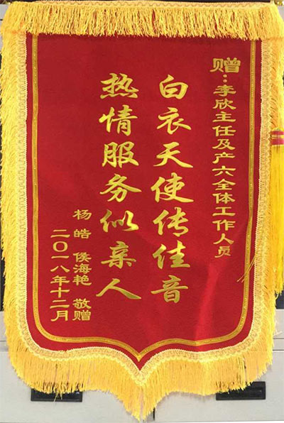 楊皓贈(zèng)錦旗感謝我院李欣(xīn)及六病區全體醫護人員