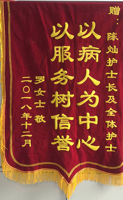 羅(luó)女士贈錦旗感謝我(wǒ)院陳燦護士長及全(quán)體護士