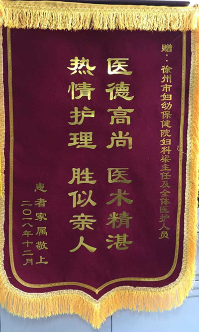 張女士贈錦旗(qí)感謝我院產科夏(xià)玉娟及產房全體醫護人員