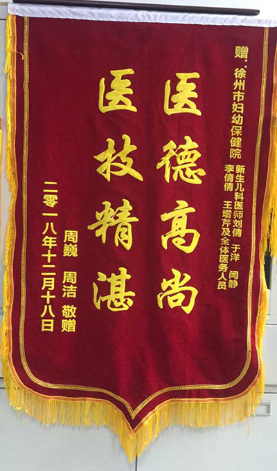 周巍贈錦旗感謝我(wǒ)院新生兒科劉倩、於洋、閆(yán)靜等全體醫護人員