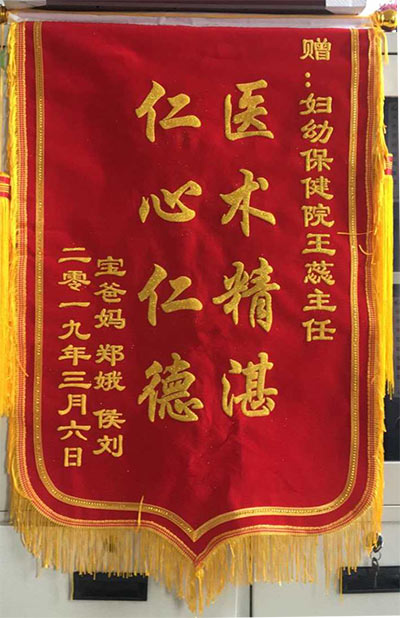鄭娥贈錦旗感謝我院王(wáng)蕊主任醫師