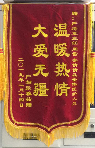 張雅茹贈錦旗感謝(xiè)我院夏玉娟、周雷、李倩倩及全體醫護人(rén)員