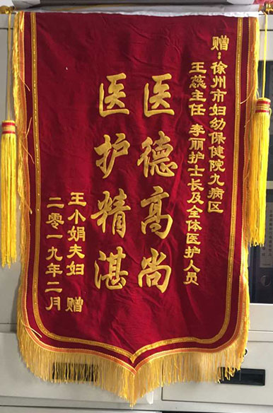 王曉娟贈錦旗感謝我(wǒ)院九病區(qū)王蕊、李(lǐ)麗及全體醫護人員
