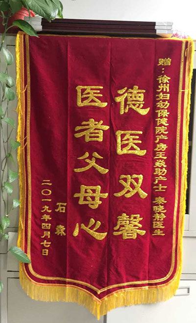 石森贈錦旗感謝(xiè)我院產房王焱、秦曉(xiǎo)靜