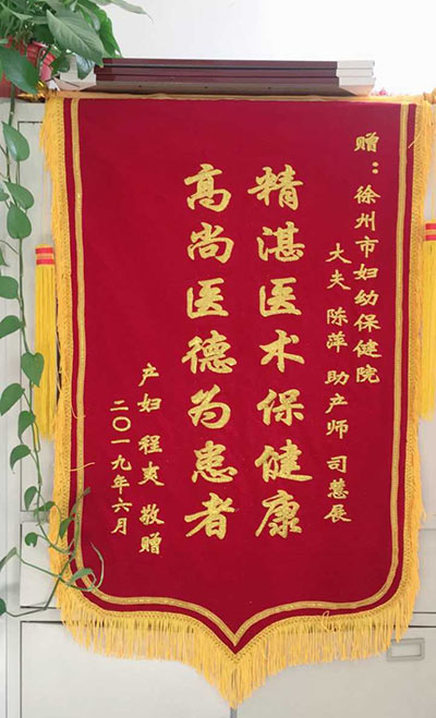 程爽贈錦旗感(gǎn)謝(xiè)我院陳萍、司慧展