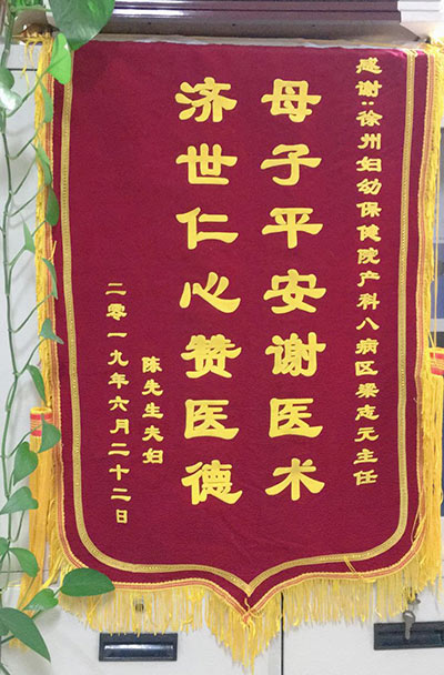 陳先生贈錦旗感謝我院產(chǎn)科梁誌元