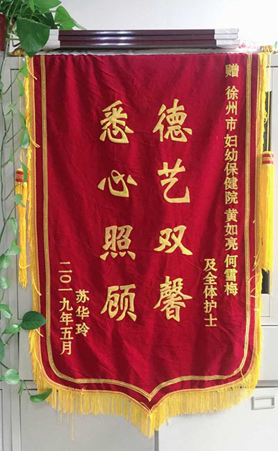 孫夢陽贈(zèng)錦(jǐn)旗感謝我院新(xīn)生兒科程福霞(xiá)、黃梅及全體醫護人員