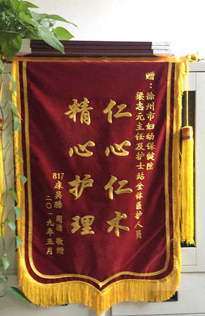 羅楠贈錦旗感謝(xiè)我院產科梁誌元、馬海琴及全體醫護(hù)人員