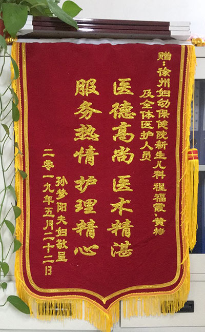 孫夢陽贈錦旗感謝(xiè)我院新生兒科程福霞、黃梅及全體醫(yī)護人員