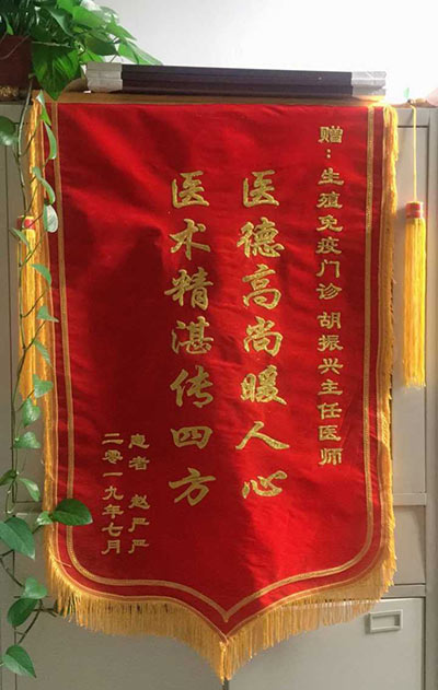 趙(zhào)嚴嚴贈錦旗感謝(xiè)我院胡(hú)振興