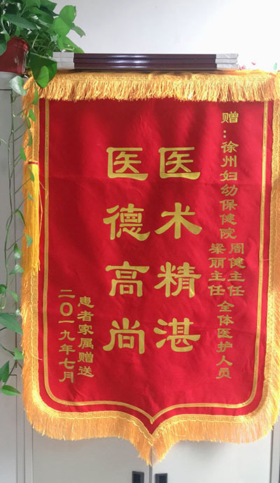 患者家屬贈錦(jǐn)旗感謝我院周健、梁麗(lì)及全體醫護人員