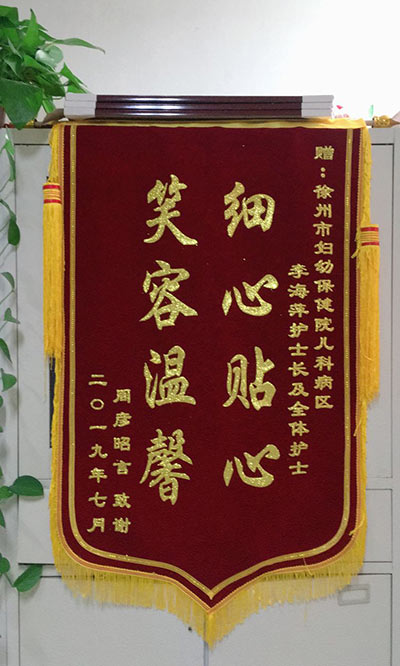 周彥(yàn)贈錦旗感謝我院兒科李海萍及全體護士