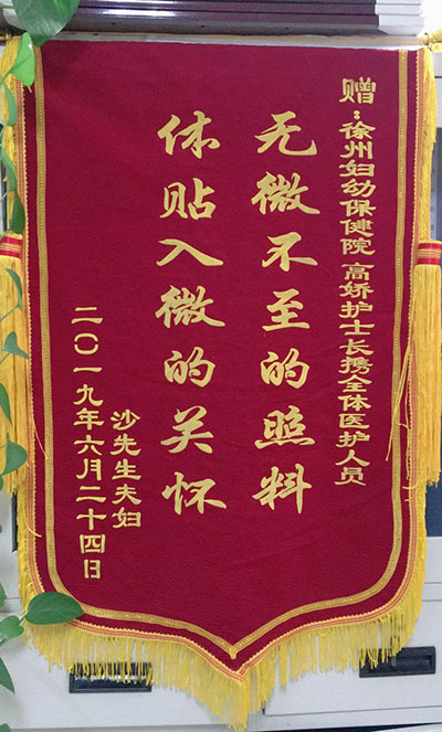 孫夢陽贈錦(jǐn)旗感謝我院新生兒科程福霞、黃梅及全體醫(yī)護人員