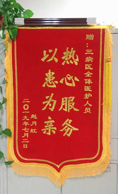趙月(yuè)紅贈錦旗感謝我院三病區全體醫護人員