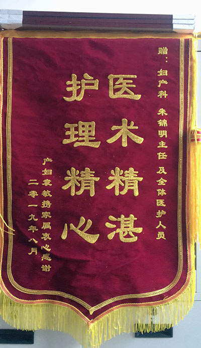 朱女士贈錦旗感謝我院楊曉、梁麗、李青青及全體醫護人員