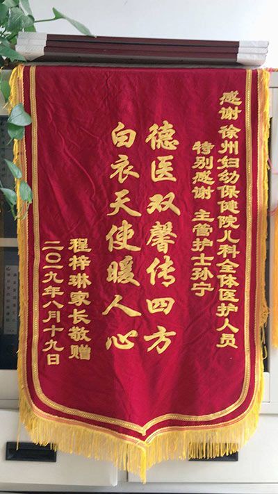 程梓琳贈錦旗感(gǎn)謝我院兒科孫寧及全體醫護人員