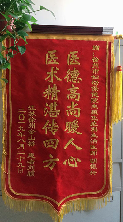 劉穎贈錦旗(qí)感(gǎn)謝(xiè)我院(yuàn)生殖免疫科胡振(zhèn)興