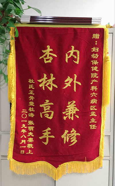 張夢贈(zèng)錦旗感謝我院高嬌及全體醫護人員