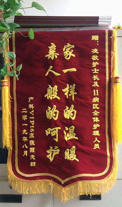 張(zhāng)顥贈錦旗感謝我院十一病區淩敬及全體醫護人員