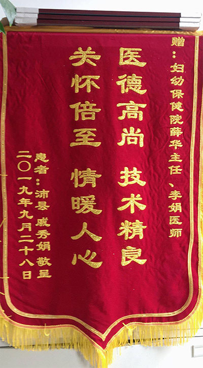 戚秀娟贈錦旗感謝我院薛華、李娟