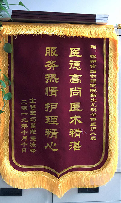 王凍玲贈錦旗感謝我院新生兒科全體醫護人員