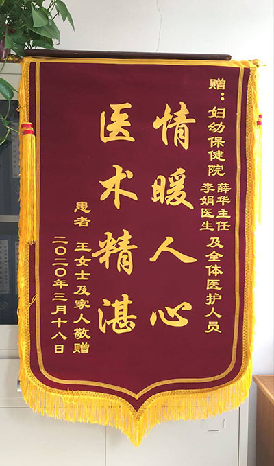 王女(nǚ)士贈錦旗(qí)感謝我院薛華、李娟及全體(tǐ)醫護人員