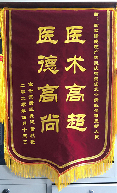 黃隆贈錦旗感(gǎn)謝我院梁誌元、郭秀香、馬鑫、石啟明及全體醫護人員