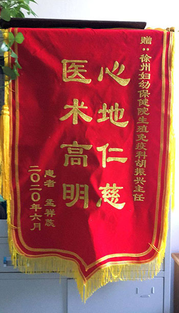 孟祥蕊贈錦旗感謝我院生殖免疫科(kē)胡振興