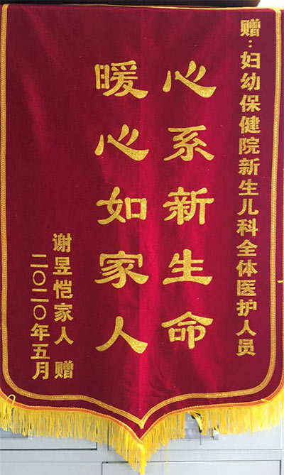 謝昱愷贈(zèng)錦旗感(gǎn)謝我院新(xīn)生兒科(kē)全體醫(yī)護人員