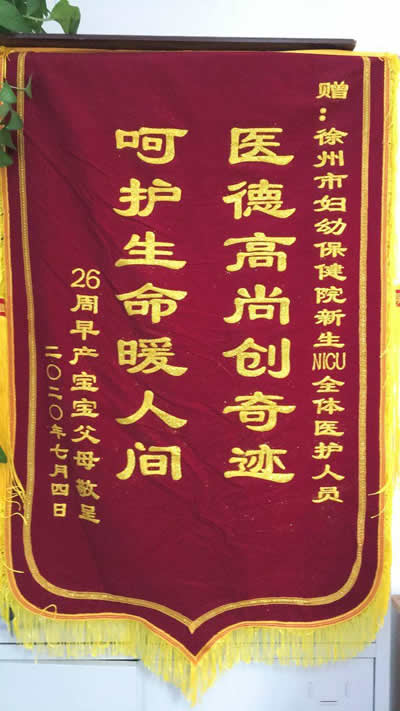 早產寶寶父母贈錦旗感謝我院新生兒NICU全體(tǐ)醫(yī)護人員(yuán)