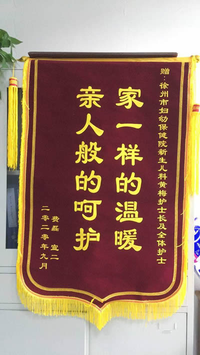 費磊(lěi)贈錦旗感謝我院新生兒科黃梅及全(quán)體護士