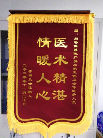 張蕊贈錦旗(qí)感謝我院產科孟慶勇