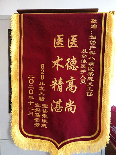 馬仰(yǎng)威贈錦(jǐn)旗感謝我院產科梁誌元、石啟明、郭秀香、馬鑫