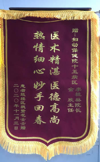 李田贈錦旗感謝(xiè)我院李欣及全(quán)體醫(yī)護人員