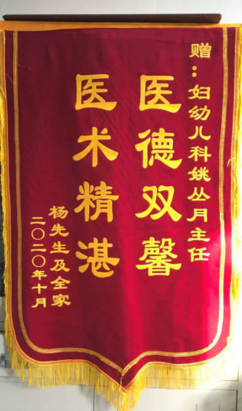 楊先生贈錦旗感謝我院兒科姚(yáo)叢月