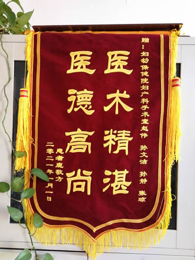 鹿敬方贈錦旗感謝我院趙偉、孫文潔等