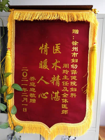 喬(qiáo)迎迎贈錦旗感謝我院婦科(kē)周(zhōu)玲及全體醫師