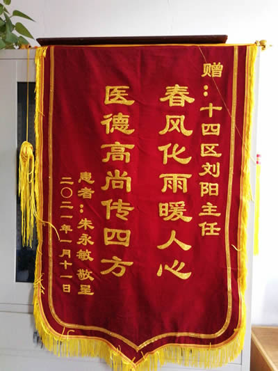 朱永敏贈錦旗感謝我院十四病區劉陽
